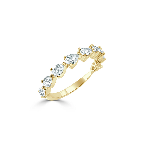 Regular price $2,914.00 Save $-2,914.00There is something about the pear shape of this ring that sets it apart from the rest. The design is elegant and the diamonds are set half way around the 14K gold band. The diamonds are prong set and total .85ctw. Would make a beautiful wedding band or a fun stackable ring. Available in both white and yellow gold.