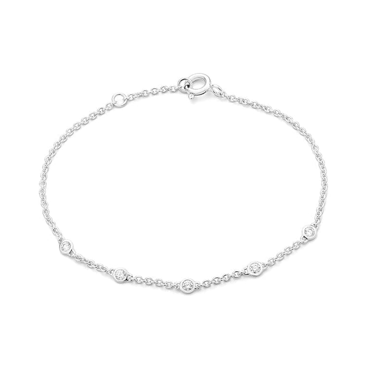This 14k white gold diamond bracelet is crafted in a five-station design. A total of 0.20cts of diamonds are set in the bracelet. This makes a great stackable bracelet and perfect gift for any occasion.