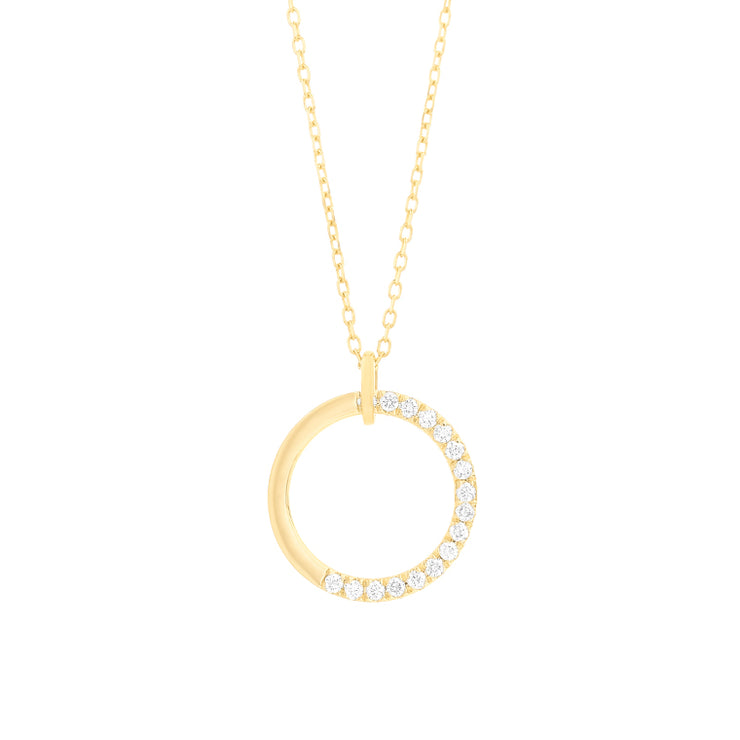 14k Yellow Gold Circle Half Diamond Pendant, 0.12ctw