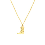 The perfect accessory for boot enthusiasts - the 14K Yellow Gold Five Stars Cowboy Boot Necklace! With an adjustable length of 16-18 inches, it's perfect for any boot lover's collection.