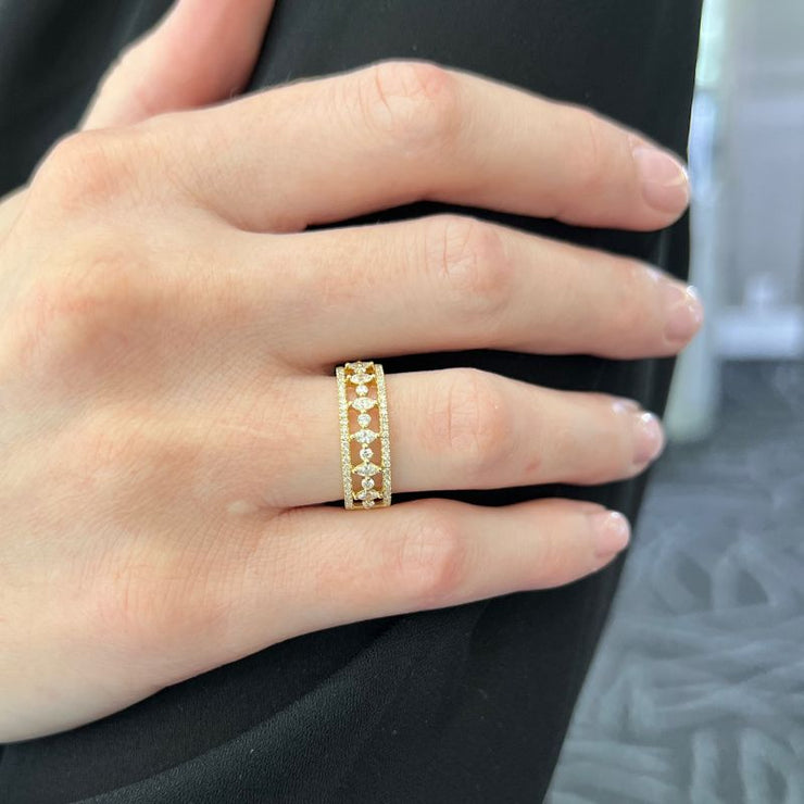 Regular price $2,375.00 Save $-2,375.0014K gold marquise and round diamond ring, totaling .52ctw. This beautiful diamond ring is available in yellow and white gold. Size 6.75 is in-stock and available for immediate delivery. Other sizes can be special ordered. Please give us a call at (512) 451-0338 or email us at sales@avantgardejewelers.com.