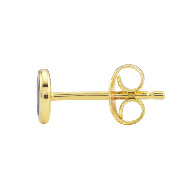 14k Yellow Gold Onyx Enamel Circle Stud Earrings