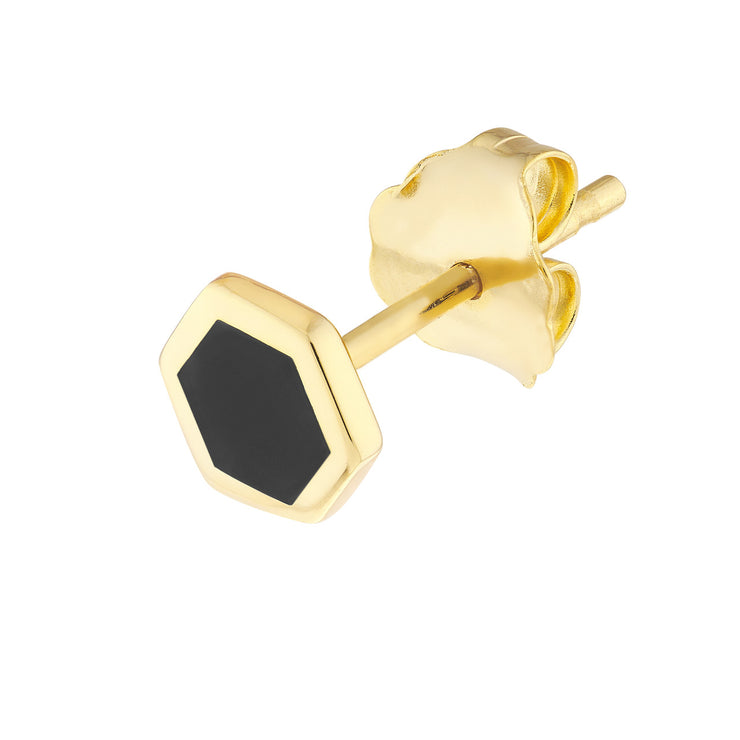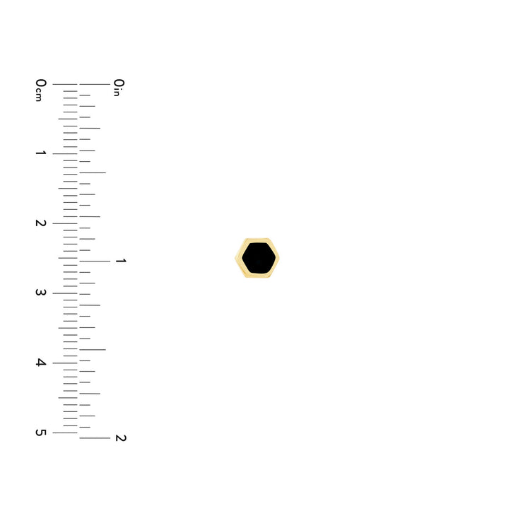 Experience the classic allure and timeless elegance of these 14k Yellow Gold Onyx Enamel Hexagon Stud Earrings. Elevate your style with the stunning combination of gold, onyx, and enamel.