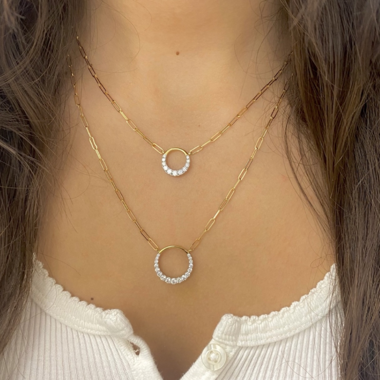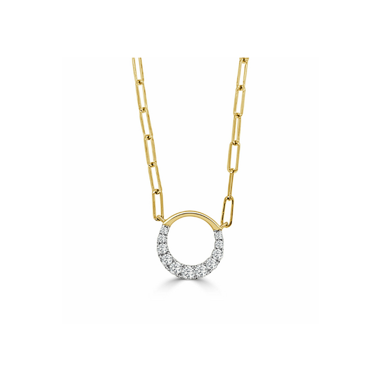 Regular price $2,396.00 Save $-2,396.00Indulge in this 14k Yellow Gold Small Round Diamond Pendant on Paper Clip Chain totaling 0.35ctw, and measures 13mm in length. If you're looking for a bigger look, check out our 17mm totaling, 0.49ctw.