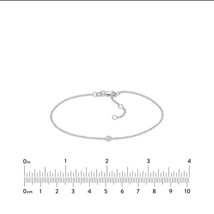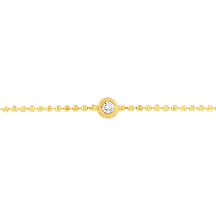 14K Gold Single 3pt. Sparkling Diamond on Diamond Cut Bead, 7.25" Adjustable Chain. Your choice: white, yellow, or rose gold!