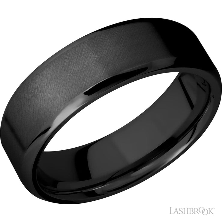 Lashbrook Designs 7mm Wide Beveled Zirconium Band, Angle Satin Finish. Size 10 In-Stock for Immediate Delivery. Other sizes can be special ordered. Contact us at sales@avantgardejewelers.com or call us at 512-451-0338.